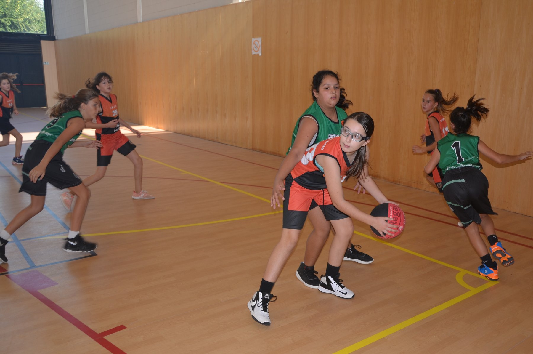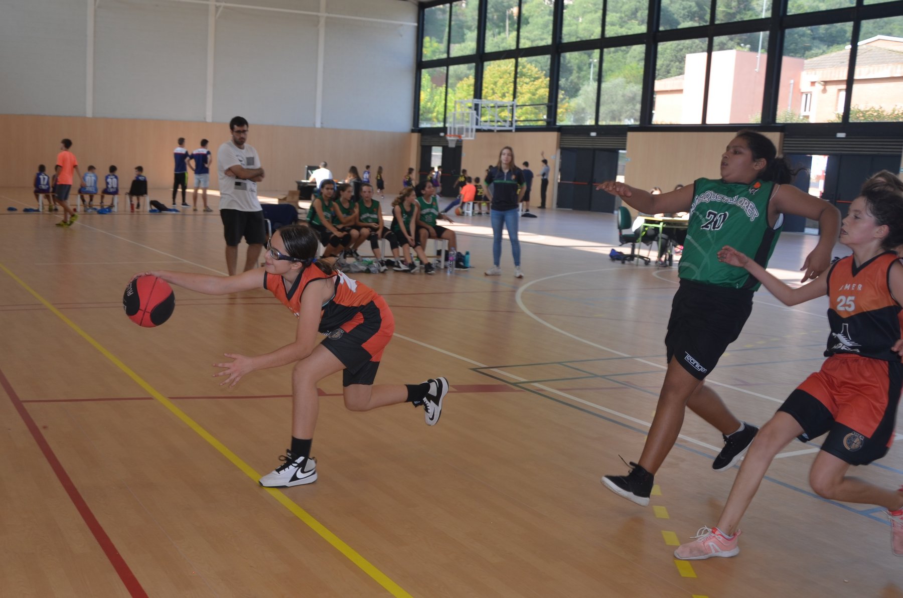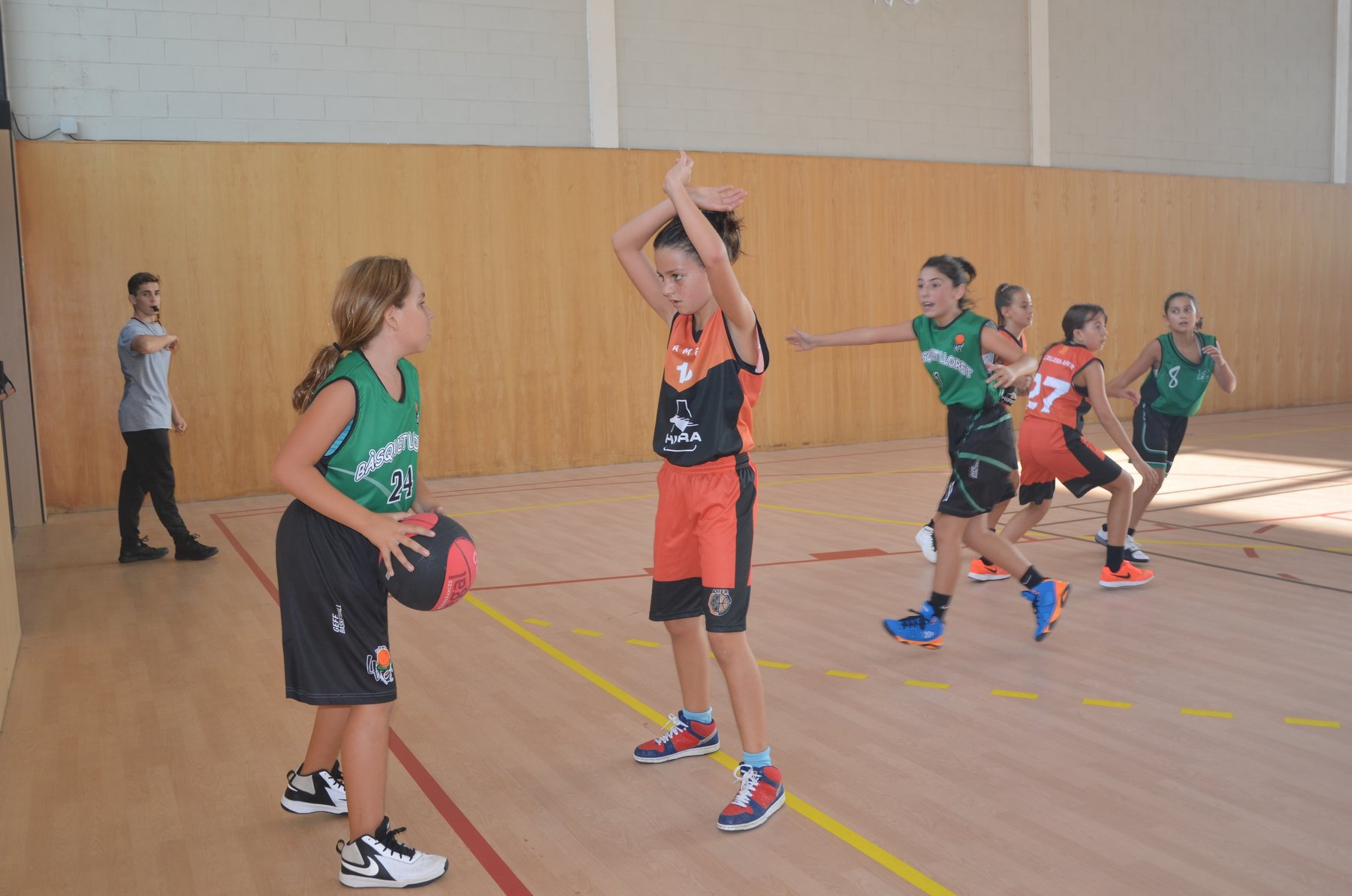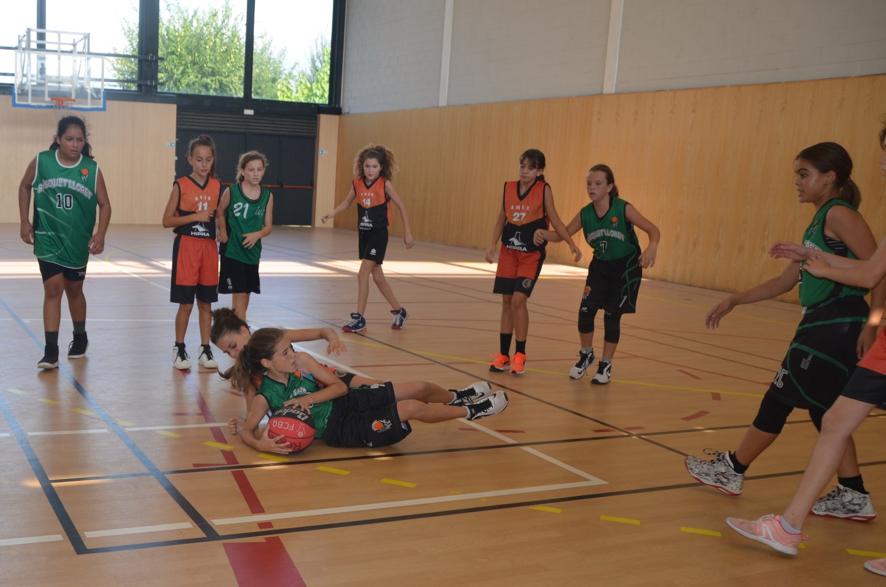 A davant tenien CB Lloret, que juntament amb les nostres Sioux, són els dos equips més potents del grup. Després d’un primer quart amb dubtes pels dos costats, es veia reflectit al marcador un escarransit 4-2. Això, però, només seria el tret de sortida per arribar a un segon quart on les nostres van demostrar que quant volen tenen un joc molt alegre per la vista de l’espectador, on molts cops es veien passades molt bones, atacs sense quasi botar i sobretot molt bona coordinació i sintonia amb les 5 jugadores que hi havia a pista cada quart. A part de l’atac, també cal destacar la defensa pressionant de les nostres, on en molts quarts va asfixiar a l’equip rival.
