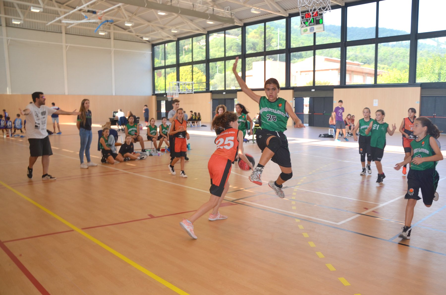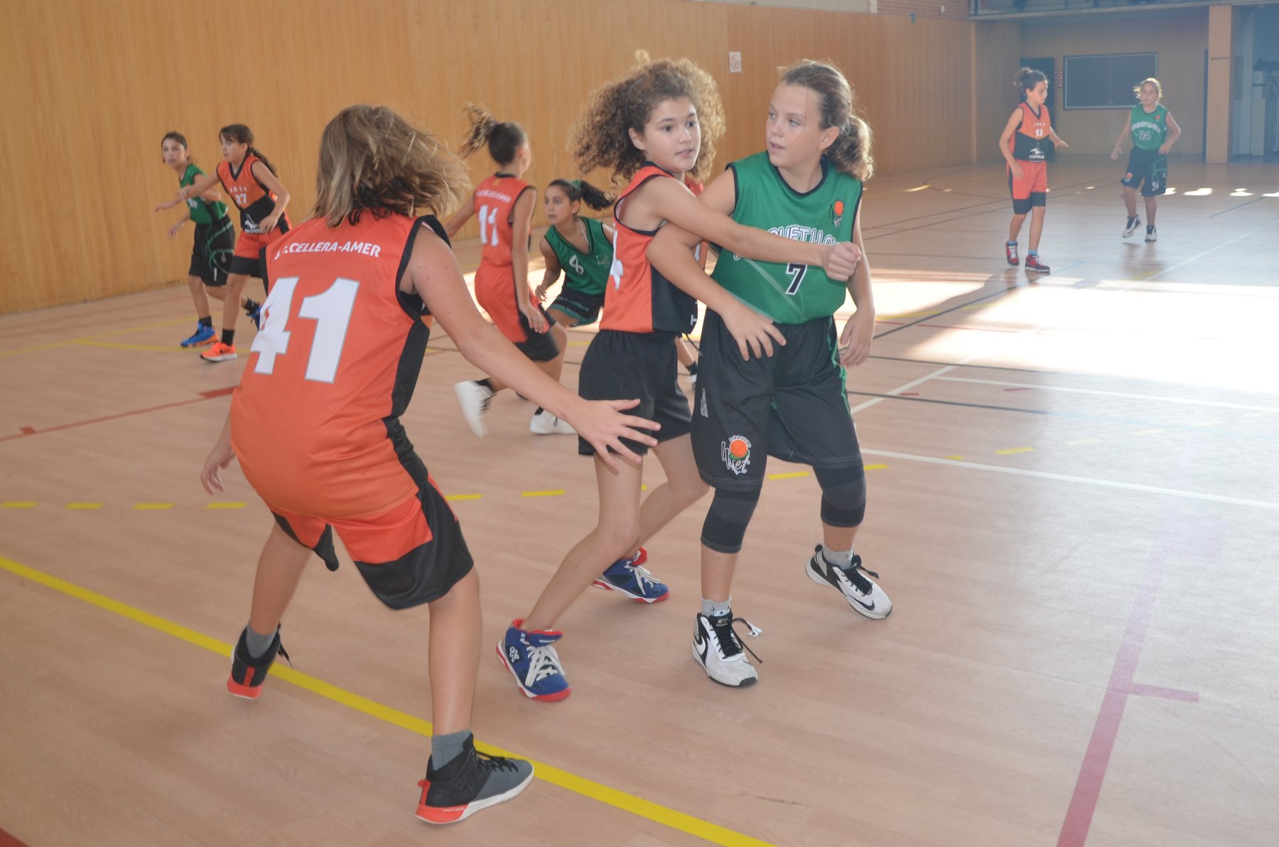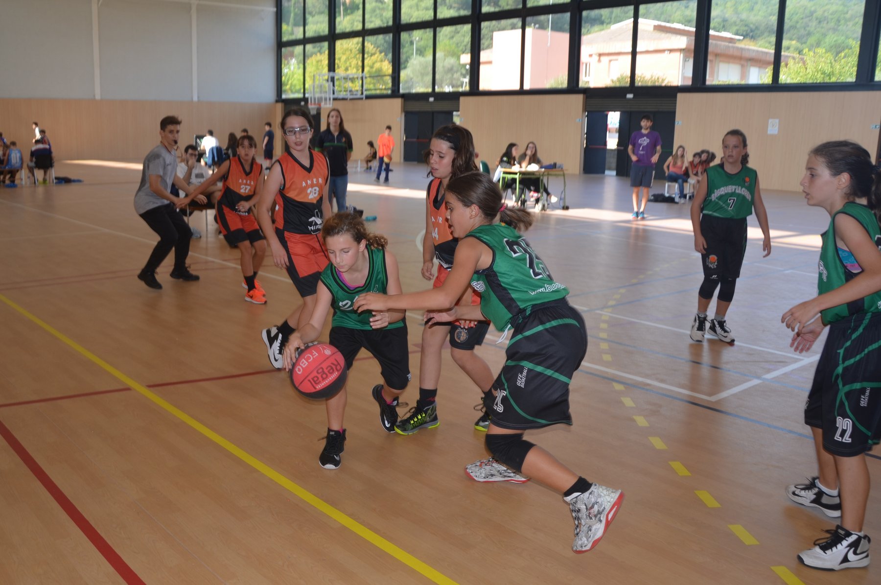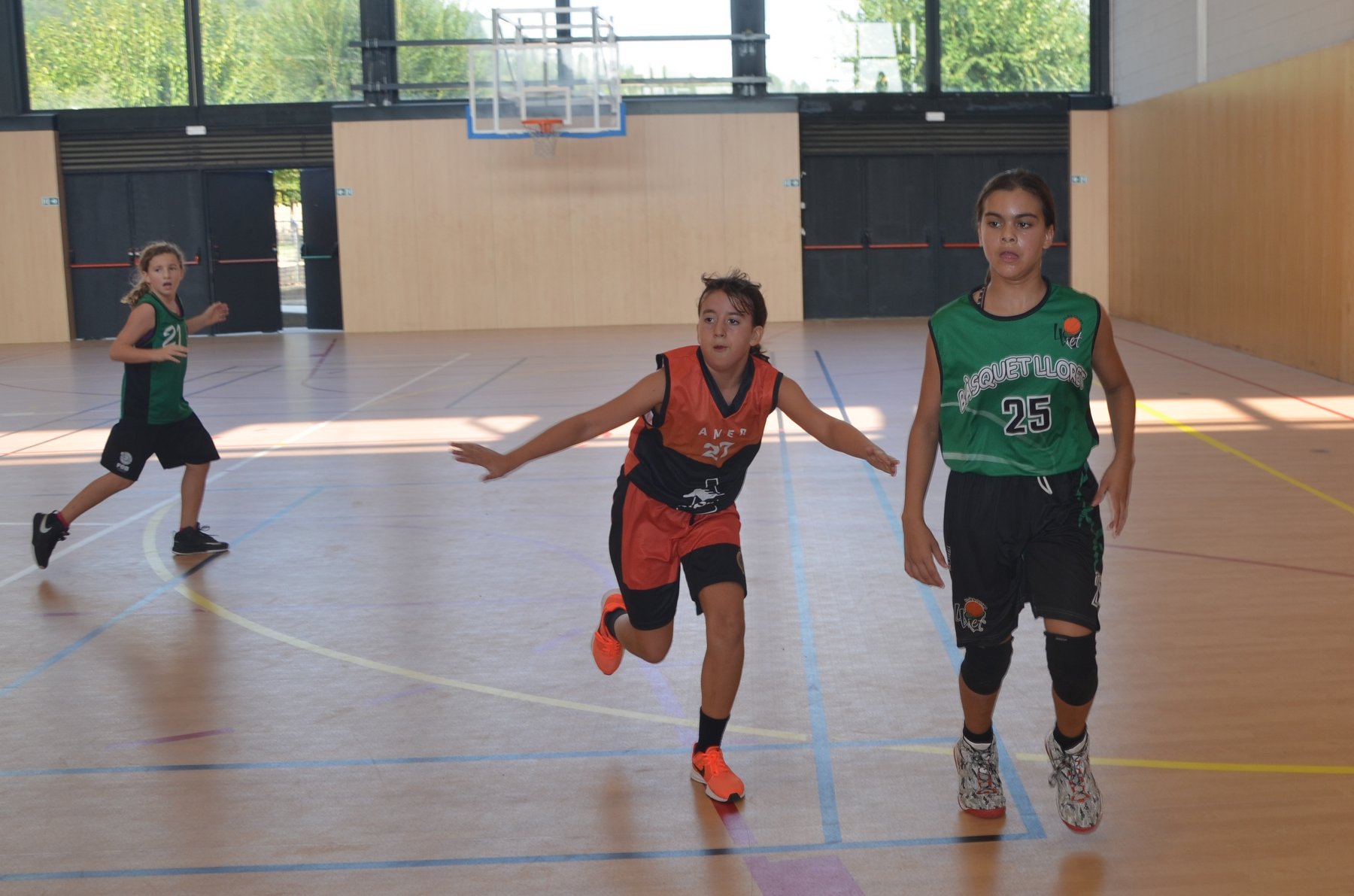 A davant tenien CB Lloret, que juntament amb les nostres Sioux, són els dos equips més potents del grup. Després d’un primer quart amb dubtes pels dos costats, es veia reflectit al marcador un escarransit 4-2. Això, però, només seria el tret de sortida per arribar a un segon quart on les nostres van demostrar que quant volen tenen un joc molt alegre per la vista de l’espectador, on molts cops es veien passades molt bones, atacs sense quasi botar i sobretot molt bona coordinació i sintonia amb les 5 jugadores que hi havia a pista cada quart. A part de l’atac, també cal destacar la defensa pressionant de les nostres, on en molts quarts va asfixiar a l’equip rival.