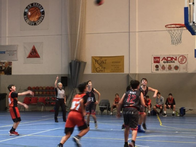 Vàrem començar el partit molt adormits, amb molts errors i imprecisions amb la passada i tirs molt forçats, això feia que al final del primer període fos un resultat en contra de 7 punts a 2. El principi del segon assalt va ser quasi idèntic, encara estàvem al llit, però cap al final d’aquest període ens vàrem despertar en part per la intensitat que va ficar un dels nostres jugadors mini que ens venen ajudar, en Marc d’Ambrosio, que va fer que tot l’equip es motivés i es fiqués les piles, final del 2n període 17-12. El 3r període no va tenir res a veure amb els dos primers, els nostres ja varen començar a jugar com sabent fer i sobretot a anotar de manera més fàcil que no pas els primers minuts i també apujant el ritme defensiu, 24-23. Però el nostre 4t període va tornar a ser un horror, badàvem en defensa i deixàvem fer tirs massa fàcils que el CEB Girona aprofitava de manera molt eficient, mitja part 34-26. Estava clar que si volíem tornar a entrar el partit, havíem de millorar la defensa, 34 punts rebuts a la mitja part a una pista com aquesta penalitza molt.