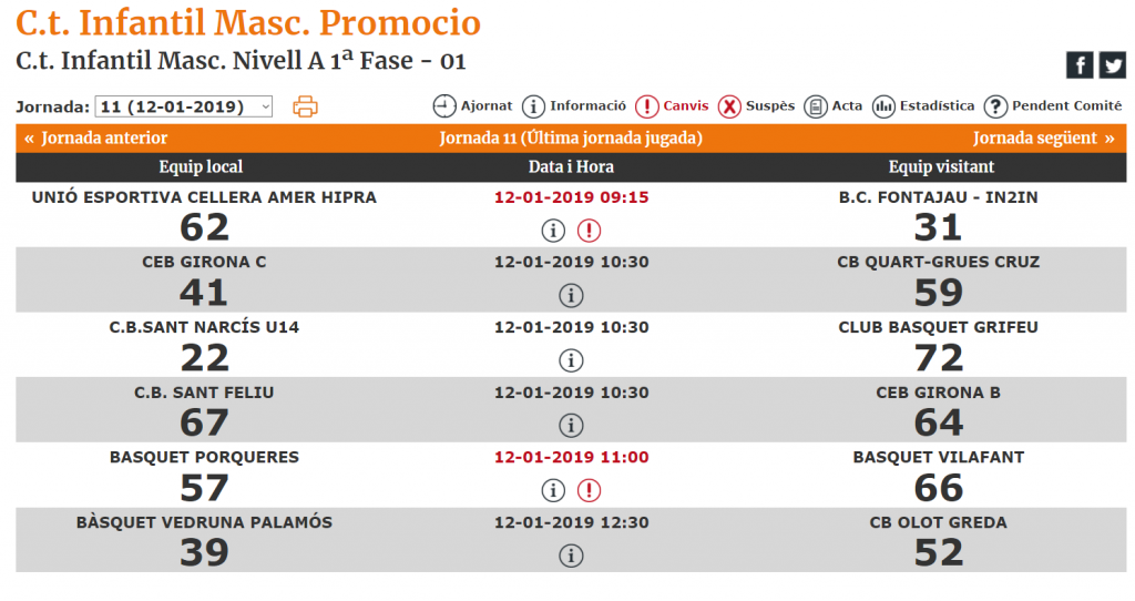 Bon inici d'any de l'Infantil Masculí (2019-01-12) Unió Esportiva Cellera Amer Hipra 62 – 31 BC Fontajau Parcials (17-12) – (22-4) – (6-5) – (17-10) Algunes Fotografies Unes quantes jugades (Vídeo) Resultats, classificació i propera jornada