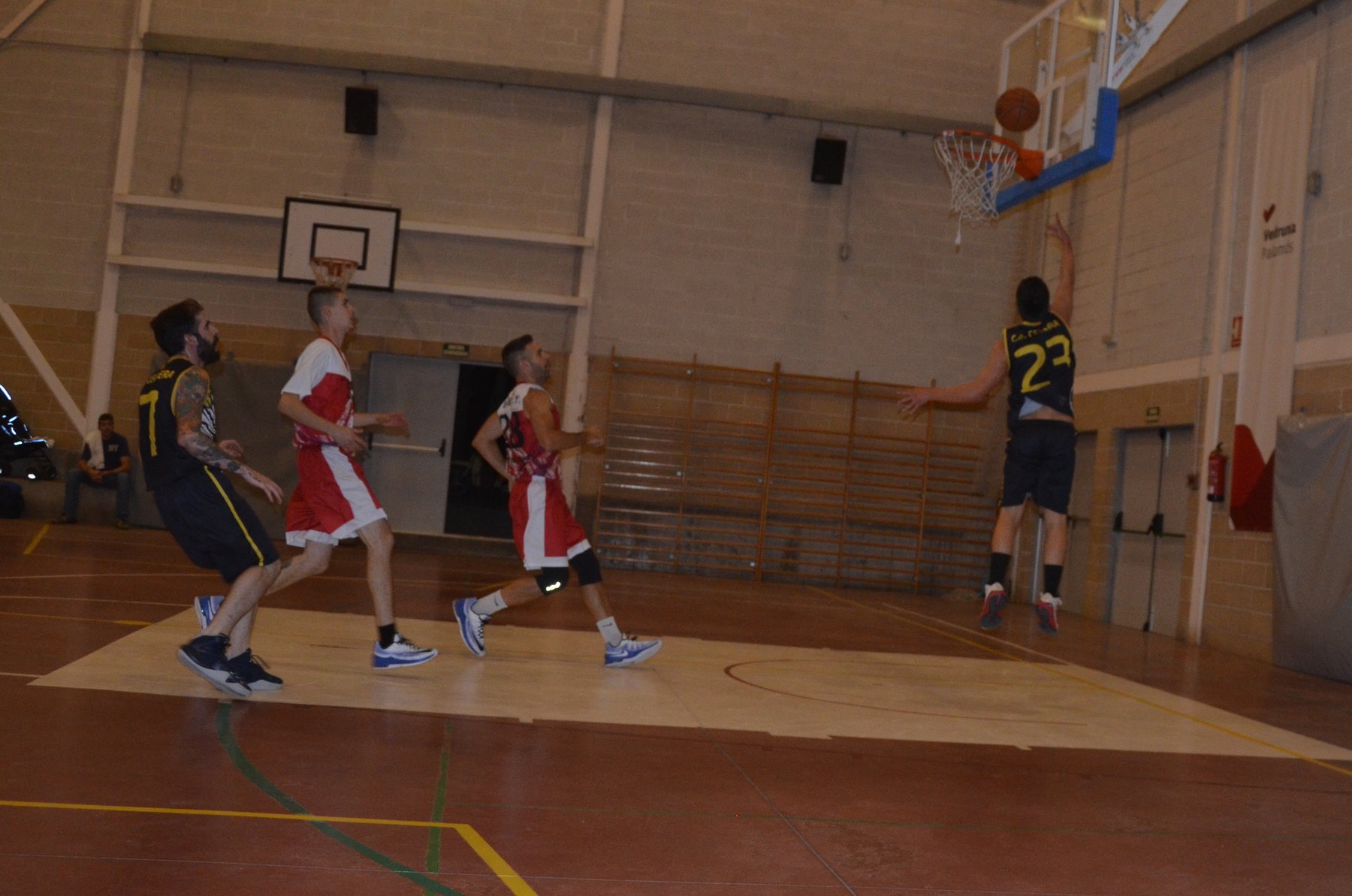 Diumenge a ¼ de 8 era l’hora en què començava a Palamós el 4t partit el Sènior B. Era el primer cop que els jugadors visitaven aquesta pista, així que els primers compassos del partit van servir per assimilar un terra dur i relliscant. El partit va començar molt igualat, i mentre que el rival obtenia els punts mitjançant joc interior, la UE Cellera Amer aprofitava totes les seves possessions per acabar amb un ràpid contraatac o un triple prop dels 24 segons. Això va fer que s’arribés al final del primer quart amb un resultat de 19 a 20. De mica en mica a l’inici del segon quart i fins al final del partit, la duresa per part del Vedruna Palamós va fer que el joc interior de l’equip es fes necessari, i mentre els exteriors feien la seva feina, els pivots de l’equip tampoc van fallar, permetent-se també algun alley–hoop en alguna jugada. El final del segon quart demostrava el vist a la pista, 29 a 46 a favor de la UE Cellera Amer. Cada vegada, quan semblava que el Vedruna podría començar la remuntada sortía algun jugador de l’Unió amb alguna genialitat que tallava qualsevol esperança de l’equip local.