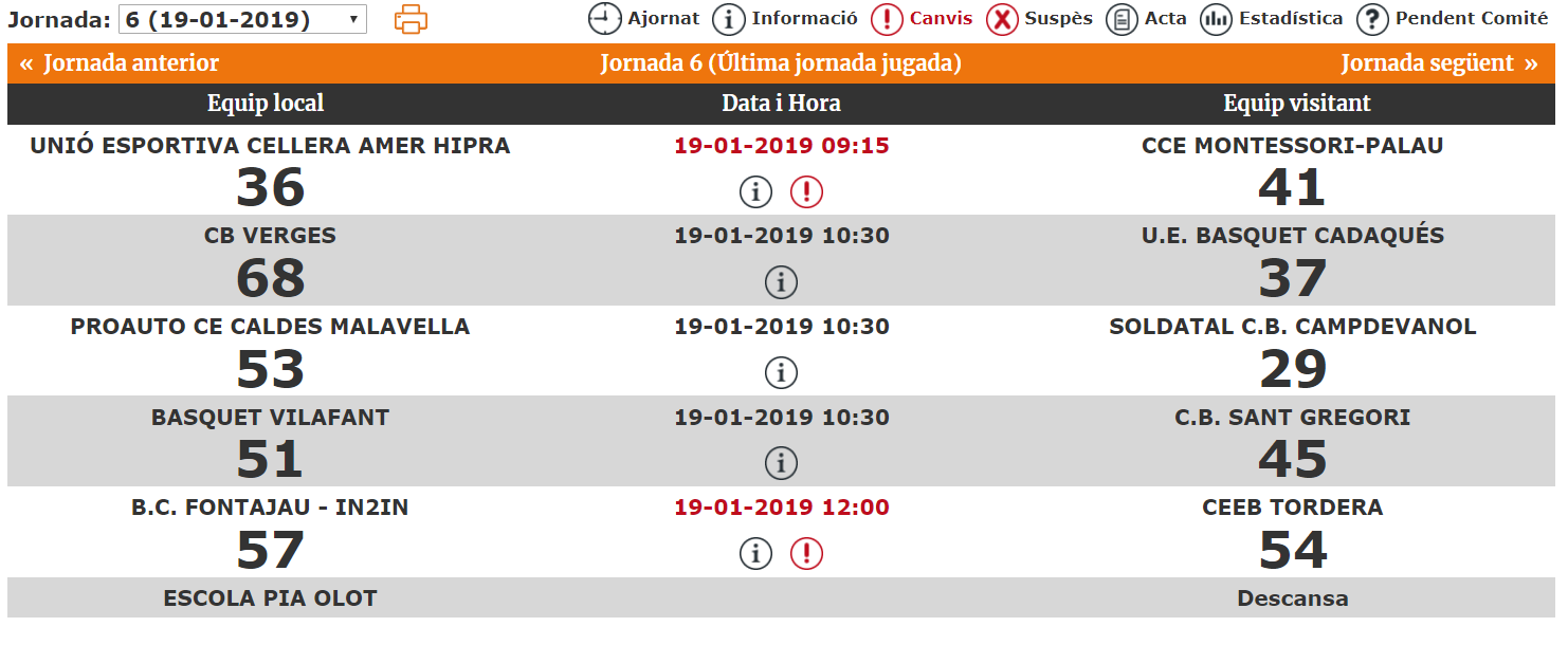 Ens varen sobrar els darrers 5 minuts Unió Esportiva Cellera Amer Hipra 36 – 41 CCE Montessori Palau Parcials (11-12), (11-12), (8-7), (6-10) Resultats i Classificació Resultats Classificació Propera Jornada Algunes Fotografíes Unes quantes jugades (Vídeo)