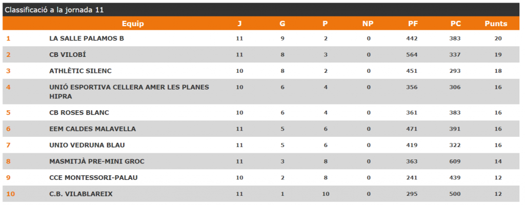Excel·lent victòria del premini contra el Caldes Unió Esportiva Cellera Amer Les Planes Hipra 48 – 34 EEM Caldes de Malavella Parcials No els tenim encara Resultats i Classificació Resultats Classificació Propera Jornada Algunes Fotografíes Unes quantes jugades (Vídeo)