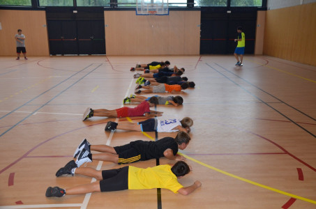 El Preinfantil també ha debutat avui amb un parell de baixes, però si no ens equivoquem, aquests 2 jugadors s’incorporaran a finals de setmana. Avui, els 7 disponibles, han començat forts, en Xevi els ha fet entrenar 2 hores i el físic ha estat un dels plats importats, els nois han suat de valent però tot han sigut rialles i cares de satisfacció. Us desitgem molta sort i que gaudiu de la temporada.