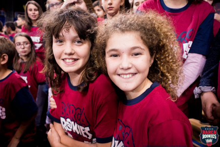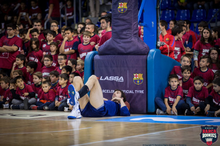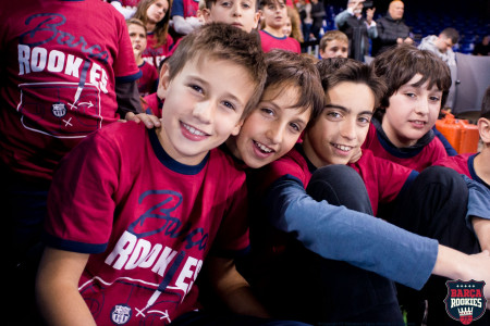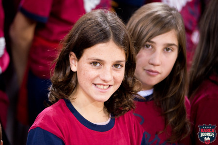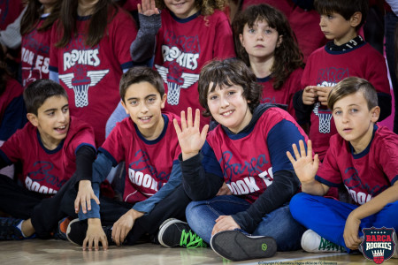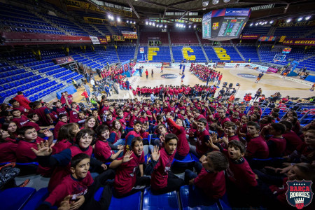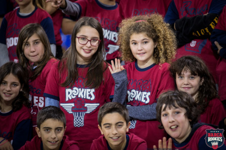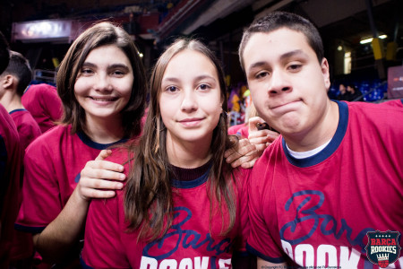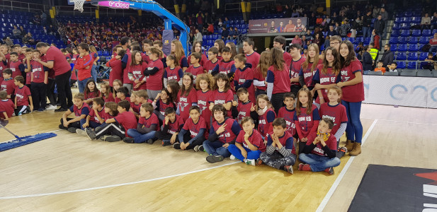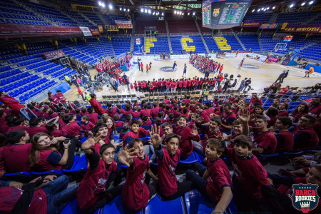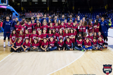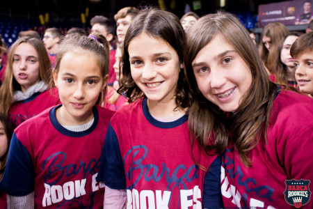 Uns minuts més tard de les 5 ja érem dins, prop de 60 nens i nenes podien gaudir de l’escalfament a pista dels 2 equips i veure a pocs metres els seus ídols que normalment només poden seguir per televisió. Enguany dins del Palau hi vàrem estar més estona del previst, ja que aquest dia es veu que vàrem batre el rècord de participants en les activitats organitzades des del Barça Rokiees, concretament més de 550 nens i nenes vinguts d’arreu de Catalunya que com nosaltres venien amb ganes de passar un gran dia. El nostre grup va ser un dels últims a fer-se la foto i això va provocar que sortíssim a fora més tard del previst i amb poc temps per ocupar les nostres localitats.