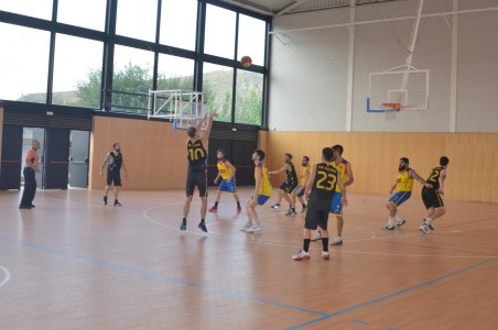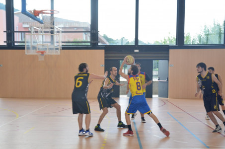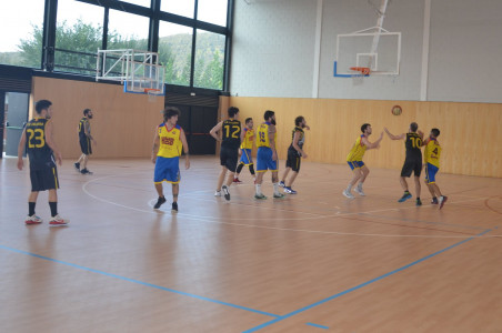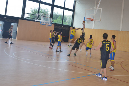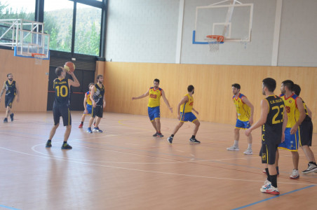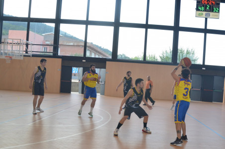 Ja des d’un inici el partit es va decantar a favor de l’equip local, contraatacs ràpids d’en Noguer i en Sergi que ens varen donar punts fàcils i el desencert del rival, va fer que s’acabés el primer quart amb un marcador de 20 a 9. El segon quart va continuar amb la mateixa dinàmica del primer, amb moltes anades i vingudes i poques faltes per part dels dos equips, sota cistella en Marc Clarà es feia amo del rebot, tant defensiu com ofensiu, sempre ben acompanyat per l’Albert i en Marly, que quan no hi era en Clarà seguien la tònica d’encert que necessitava l’equip fent que la diferència en el marcador encara fos més gran. A la mitja part el marcador es va quedar amb un 41 a 27 favorable.