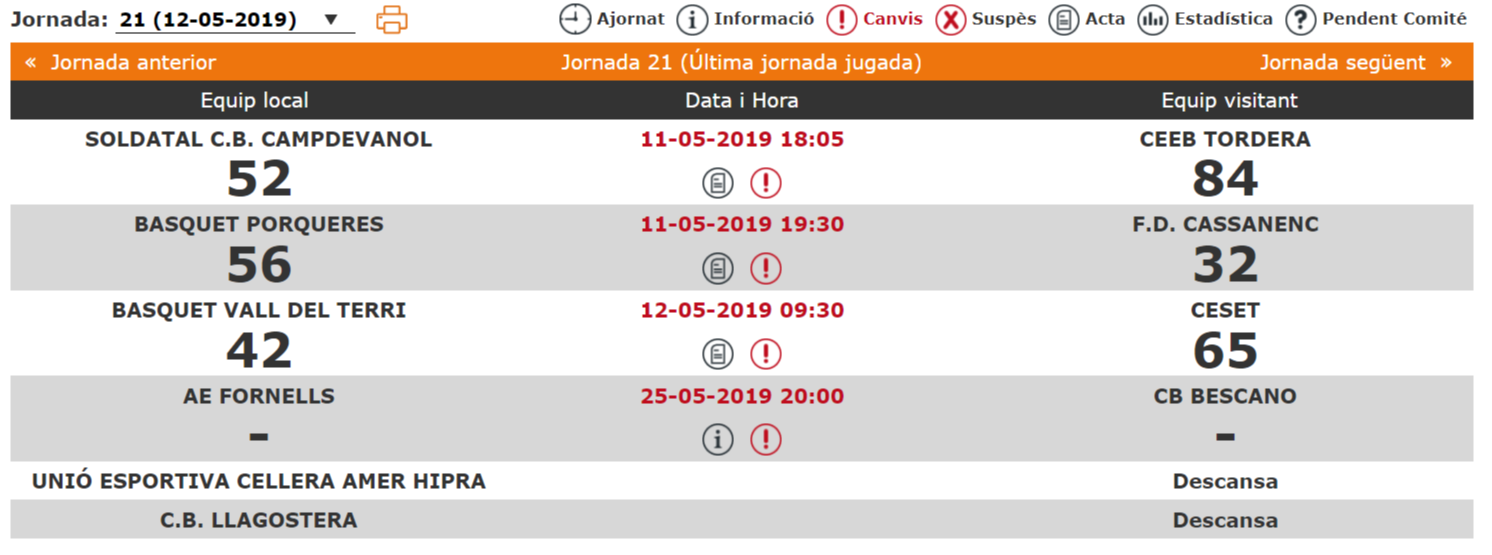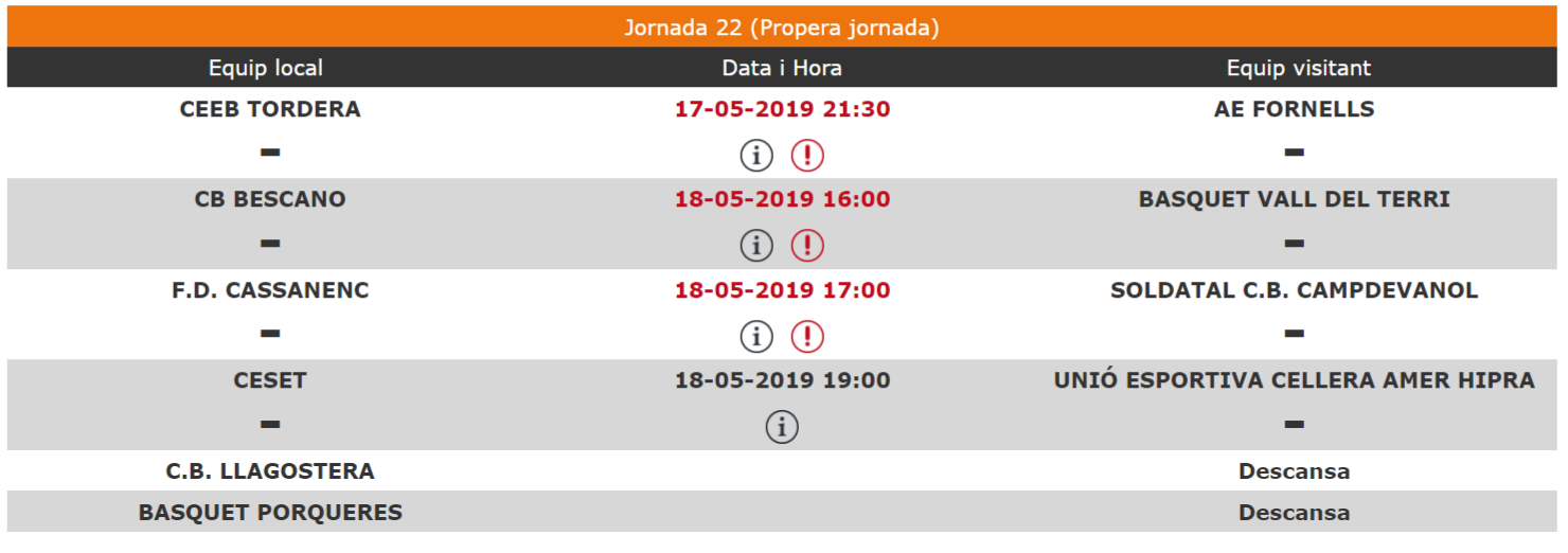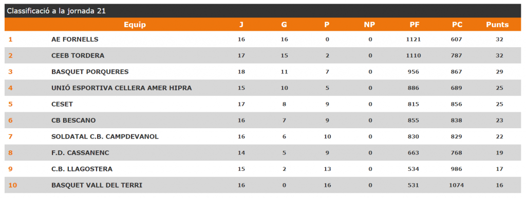 Poca exigència contra el cuer Unió Esportiva Cellera Amer Hipra 56 – 38 Bàsquet Vall del Terri Parcials (17-11), (17-7), (14-7), (10-11), Resultats i Classificació Resultats Classificació Propera Jornada Unes quantes jugades (Vídeo)