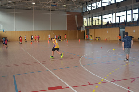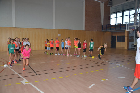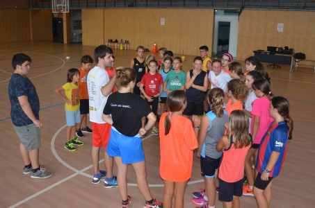 En el cas del premini han començat a mig gas, hi faltava la meitat de la plantilla, encara hi ha gent de vacances o de colònies i no serà fins a la setmana vinent quan aquest equip pugui fer un entrenament al complet, de moment la Júlia i l’Anna s’han dedicat a fer uns quants exercicis de pilota i tècnica individual per tal de començar a valorar les necessitats específiques de cada jugador i el nivell d’exigència de l’equip, però com és natural no serà fins a la setmana vinent a on la valoració podrà ser més exacta i així posar la metodologia de treball més adequada.