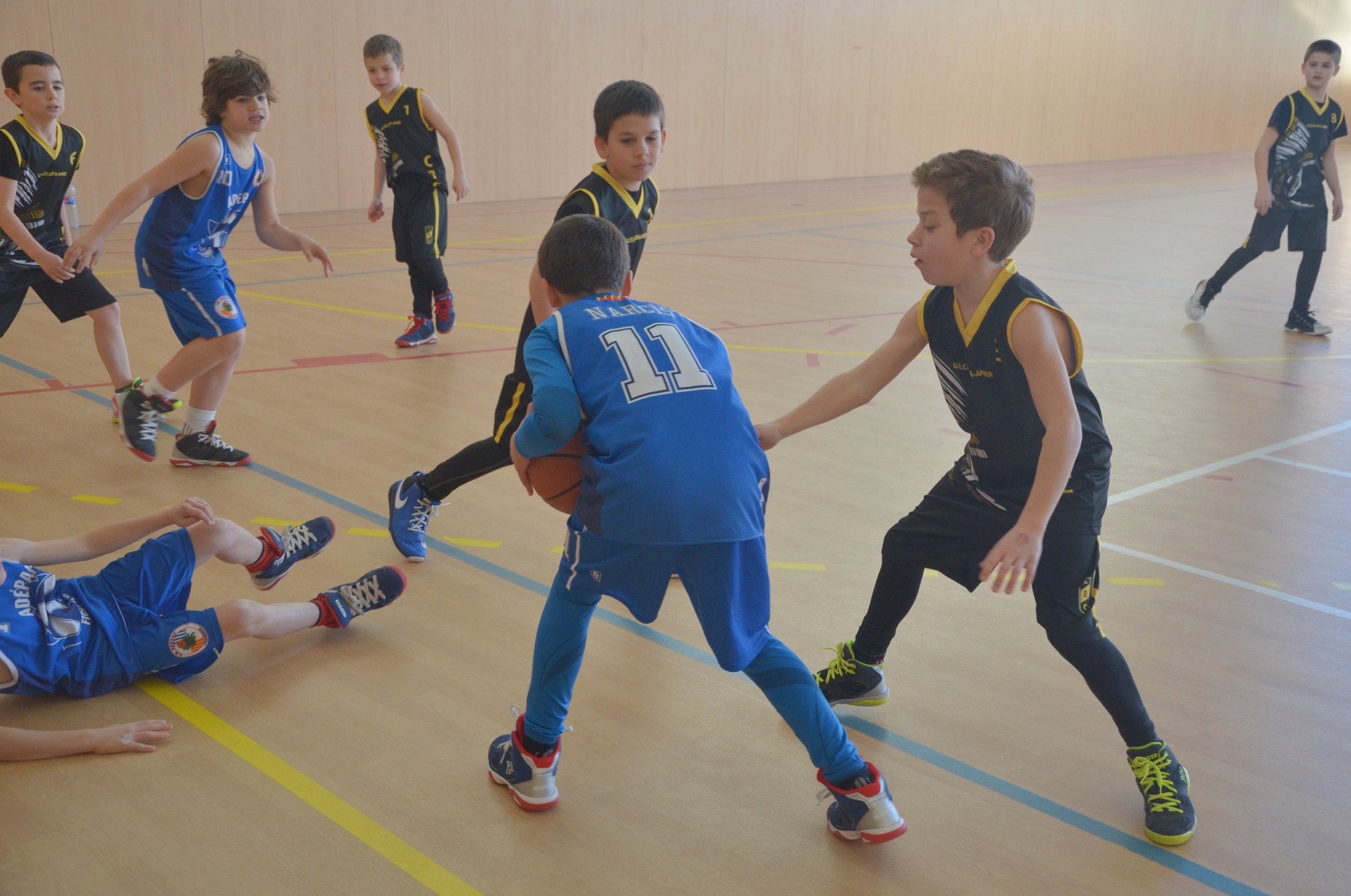 La pressió de l’Adepaf els hi va donar bons resultats i així es varen imposar en el 3r i 4rt quart amb uns parcials de (7-8) i (4-9), per tant al marcador a la mitja part del partit era favorable a la Unió Esportiva Cellera Amer per 30 punts a 21.