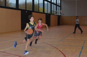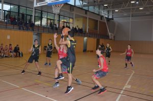 La segona meitat però, la sintonia del partit va anar canviant, a poc a poc, es va anar girant la truita, els nostres es van començar a ficar les piles, un parcial de 7-0 es va veure trencat per un triple visitant, (31-39), així i tot, ja no es veia el Girona jugant sol. De mica en mica la diferencia en el marcador era més curta, (41-47). Finalment es va arribar a un fantàstic 7è període, on es va tornar a veure un equip lluitador. Una pressió a tota la pista va funcionar per recuperar pilotes fàcils i tenir clars contraatacs. Per fi es controlava el rebot i el nostre ritme era molt diferent del vist a la 1a meitat (54-50). Primer avantatge, a part d’un 3-2 inicial, dels nostres nois. Que van sortir a l’últim període a donar-ho tot fins al final (61-54).
